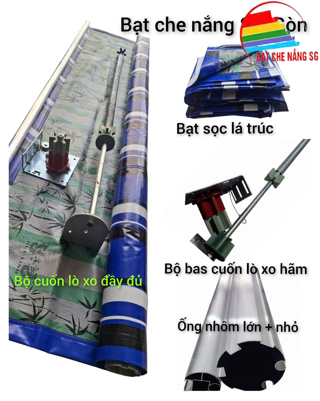 Bộ bạt cuốn/bạt thả lò xo tự hã.m đầy đủ, gồm: