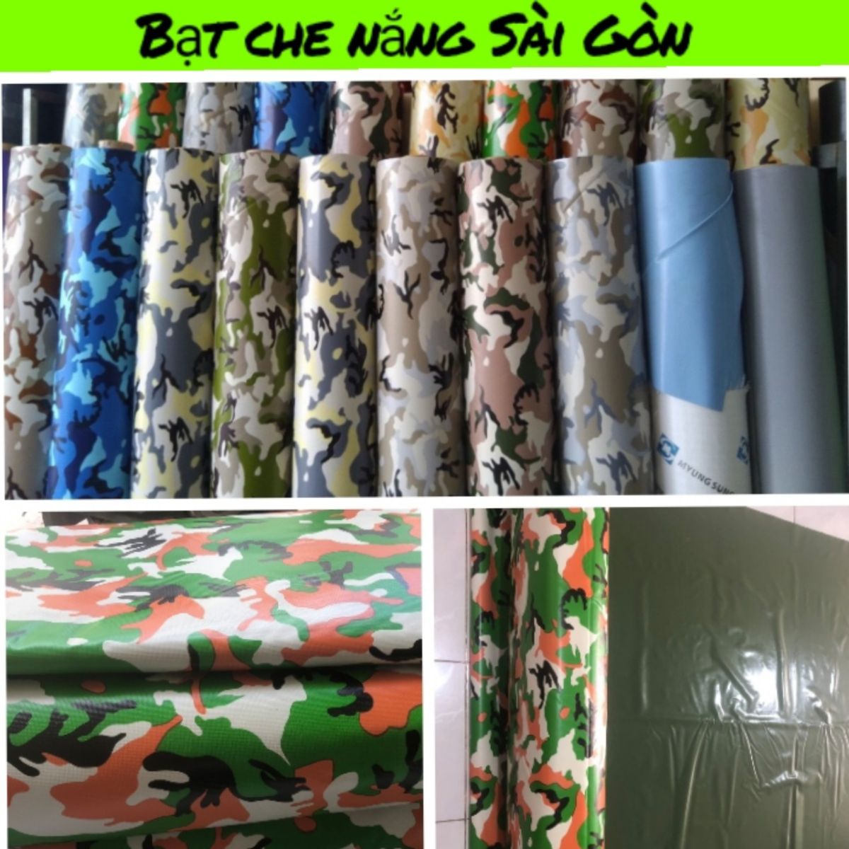 Bạt nhựa PVC che nắng mưa (màu quân đội/rằn ri) - dòng bạt Hàn Quốc được ưa chuộng lắp mái che di động hiện nay